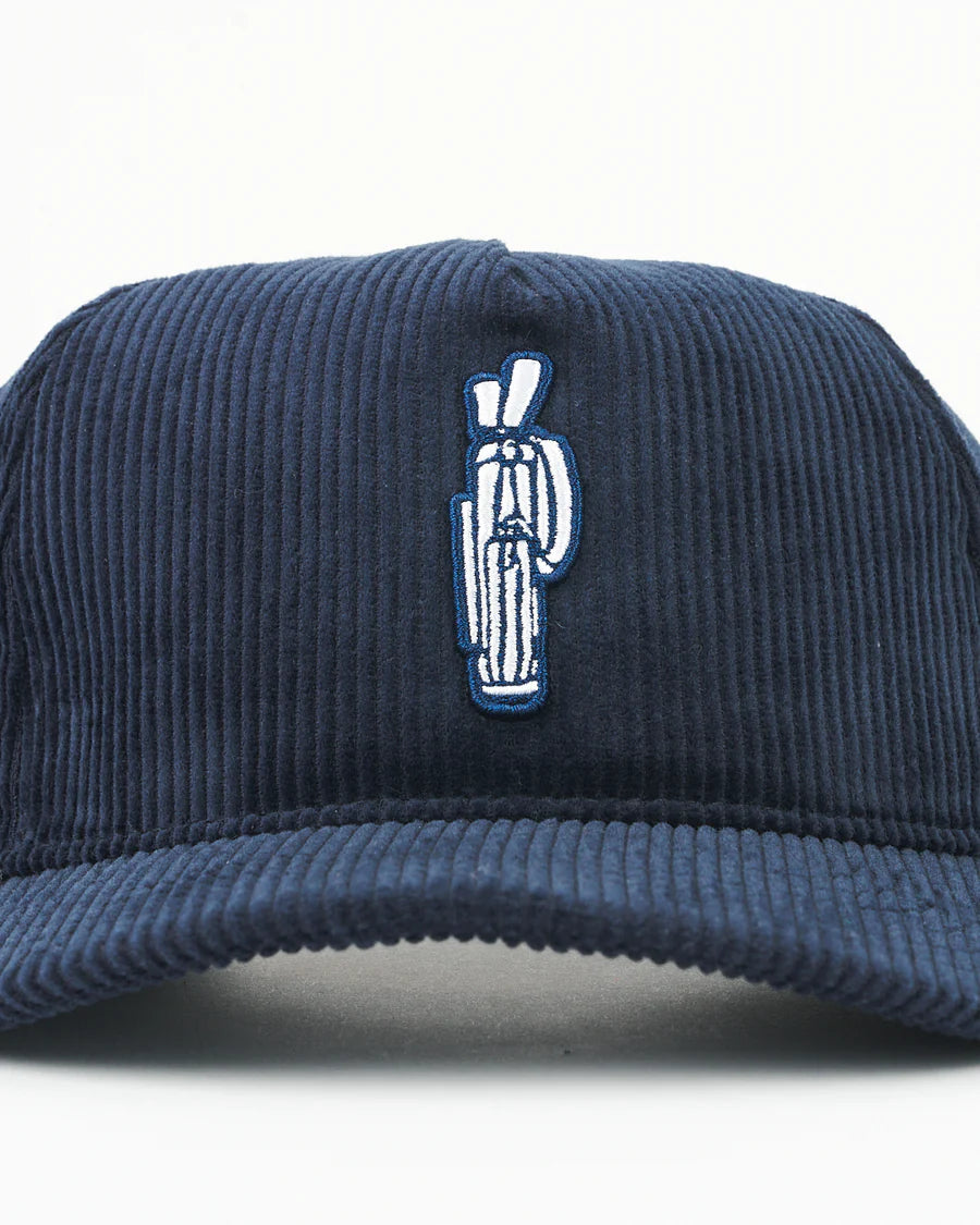 Discover a perfect blend of stylish lifestyle and golf-inspired design with the Carry On Strapback . This cap takes casual style to the next level with its luxurious corduroy fabric, setting a new standard for everyday accessories. The adjustable leather strap ensures a comfortable fit, while the front proudly displays a detailed embroidered patch with a classic golf bag - a tribute to the game and its passion.