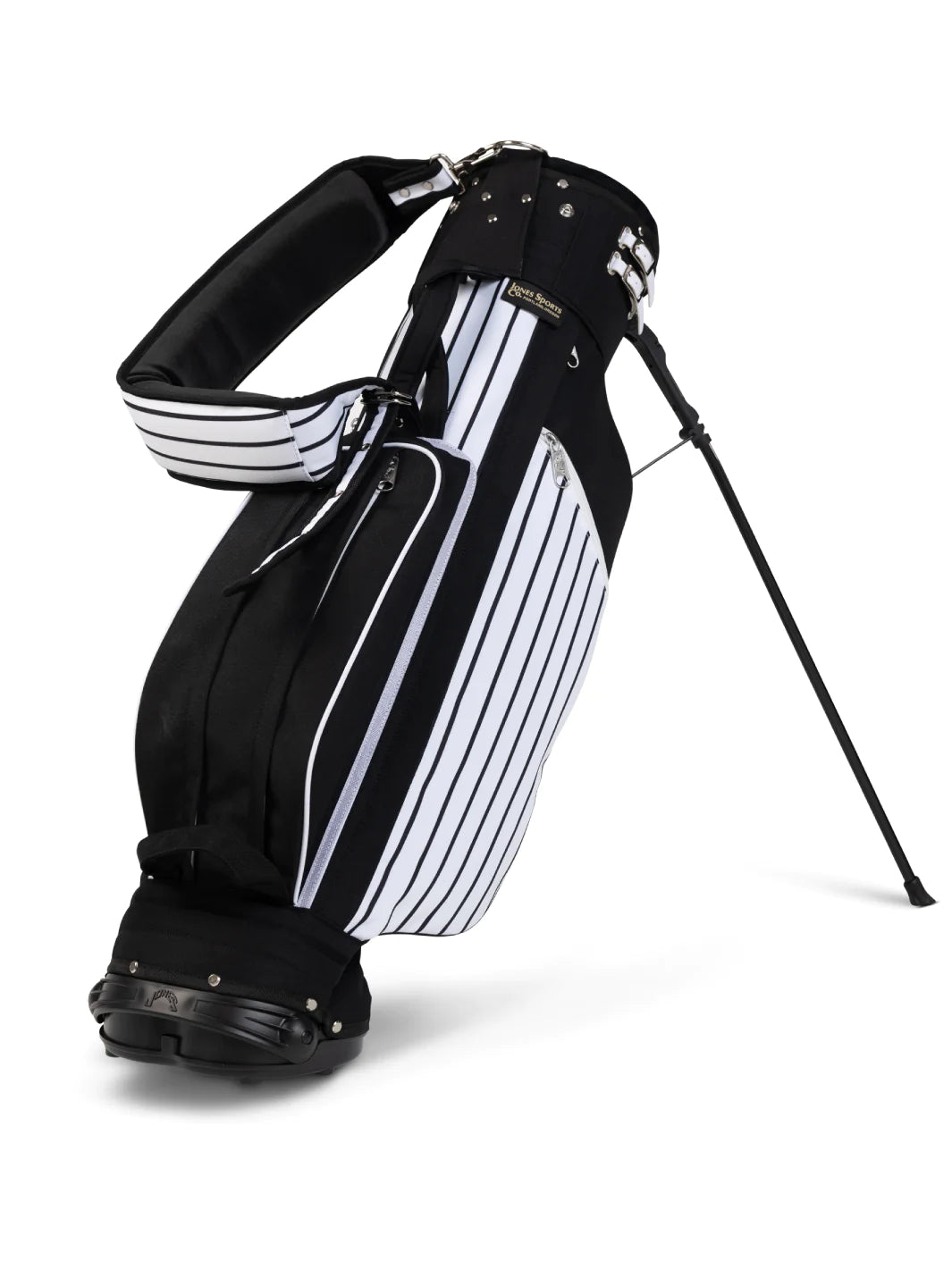 The Jones Classic Stand bag is a modern version of the traditional golf bag. As the best of both worlds in a carry bag and stand bag, this bag is an excellent remix of the classic stand bag that became an instant icon in the 80s and 90s. With symmetrical pocket design, there is plenty of storage for your essentials in the middle and allows versatility to carry on either left or right shoulder. The traditional Jones design combined with modern, durable materials and well-engineered rack systems bring this classic bag into the modern world of golf style.