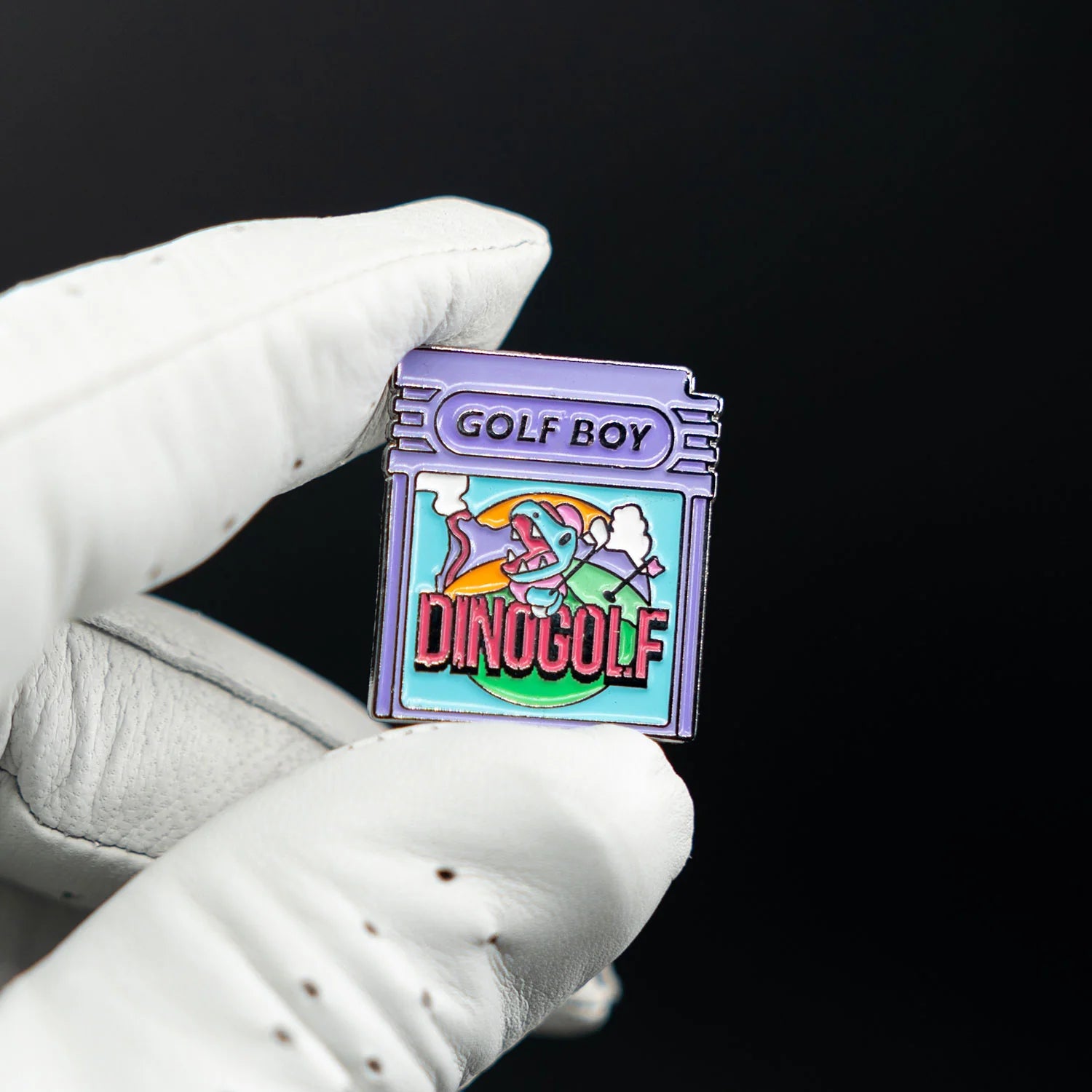 The GOLF BOY golf ball marker is a tribute to the golf video games we loved as youngsters. Created in collaboration with 8 Bit Birdie, this purple "Dino Golf" game cartridge evokes memories of the Nintendo Game Boy Color era of the late 1990s.
