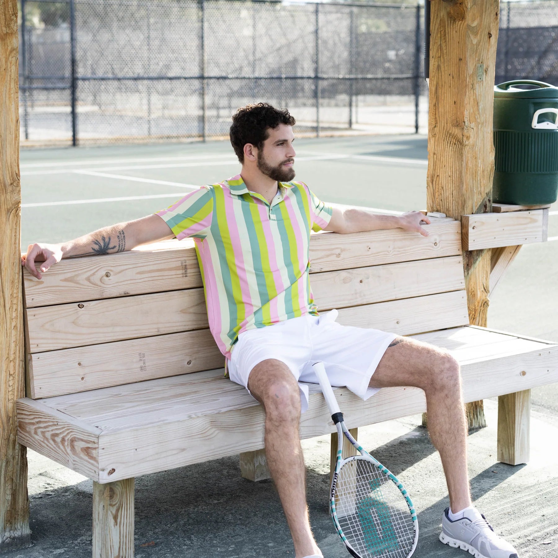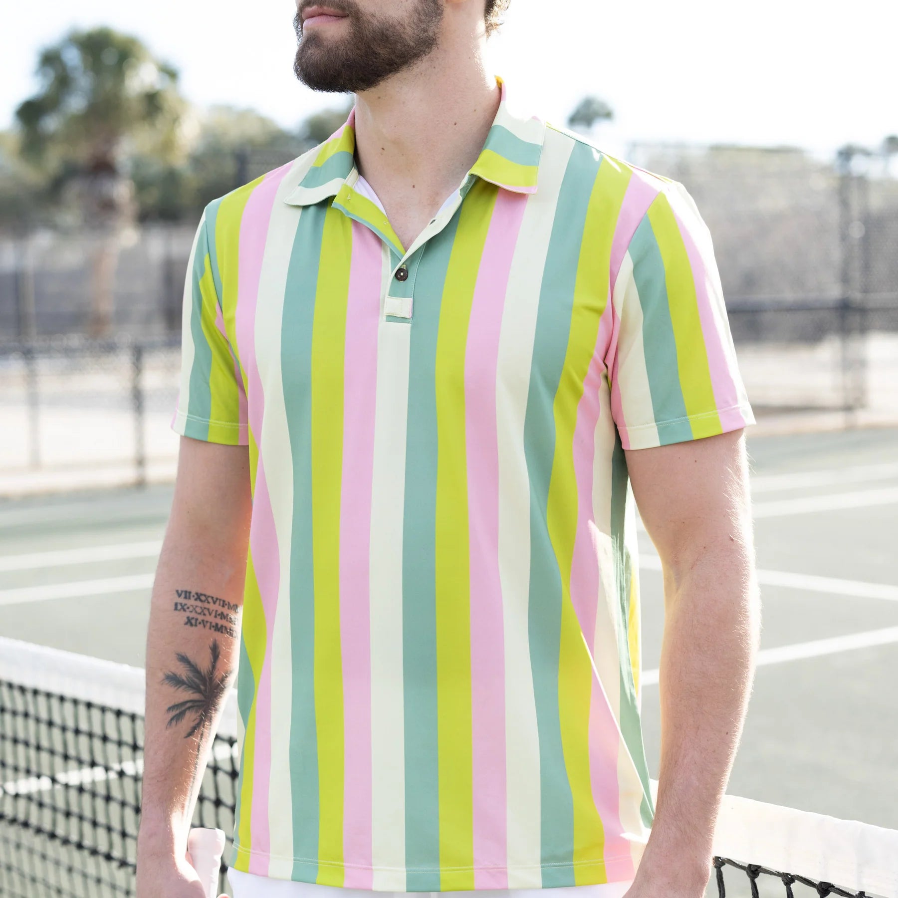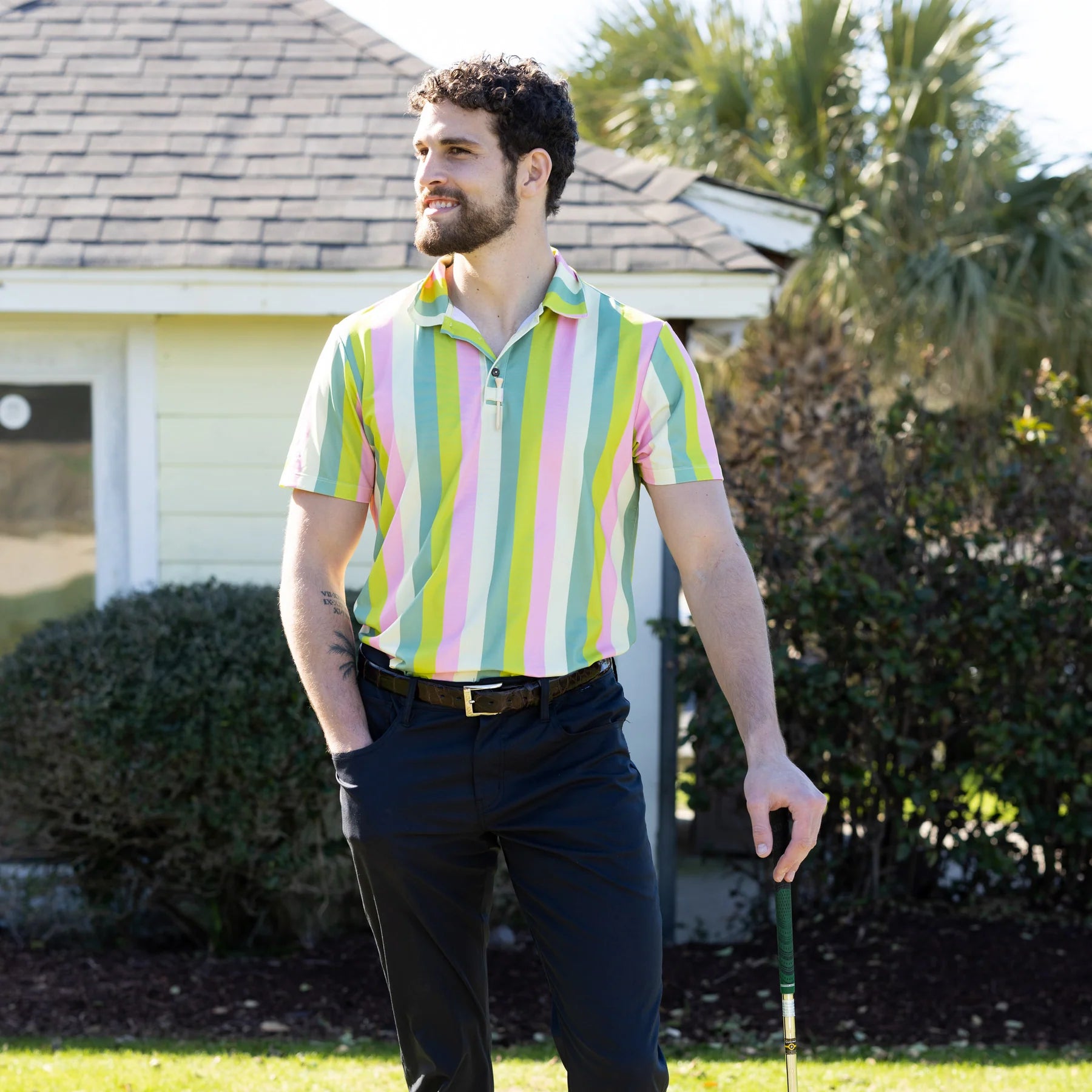 Make sure your putts and fashion are in line when you hit the course with this retro striped golf shirt from Kenny Flowers. Even if you are a winner or a loser on the golf course, you will look your best.