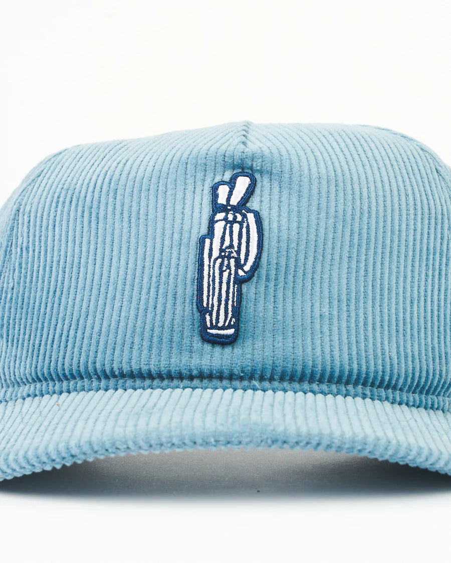 Upptäck Carry On Strapback, en keps som för samman livsstilens elegans med golfens klassiska design. Den lyxiga manchestern ger en sofistikerad känsla, medan den justerbara läderremmen säkerställer en perfekt passform. Den broderade patchen med en klassisk golfbag på framsidan är en subtil hyllning till spelet och dess tradition.