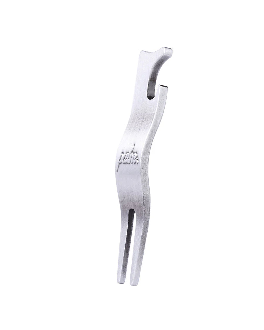 Gör din golfupplevelse komplett med Divot Repair Tool i Borstad Silver från Palm Golf – en stilren och funktionell greenlagare med integrerad flasköppnare. Denna greenlagare har en unik, handritad design som ger extra komfort vid reparation av nedslagsmärken på greenen. Den "U-formade" toppen låter dig vila klubban utan att den blir smutsig eller blöt.